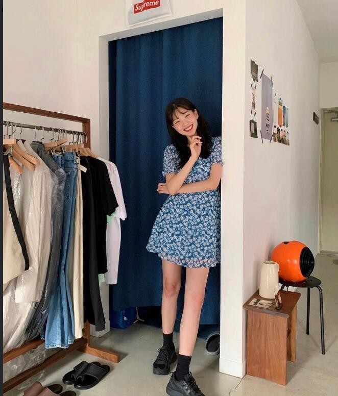 这次选择的是蓝色白花的碎花裙,上身不挑颜值又能穿出神秘浪漫的style。这次为大家准备的碎花裙,选择暗黑风的马丁靴、包袋,上身就能穿出又甜又酷的造型,看上去个性还吸睛。
