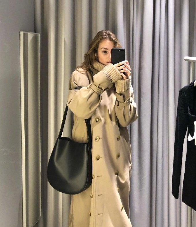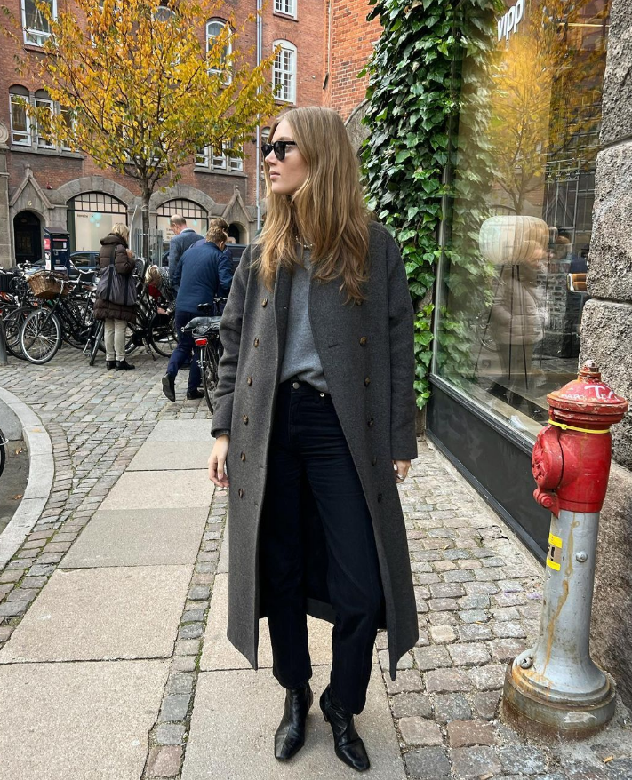 灰色呢大衣会给人很知性优雅的感觉,虽然是极致低调的,但搭配好了还是十分抢镜。