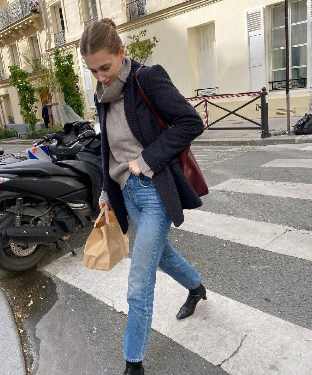 毛呢西装搭配九分牛仔裤,让你的西装不再沉闷无味,再搭配一双短筒靴子,非常的时尚清新,与众不同。