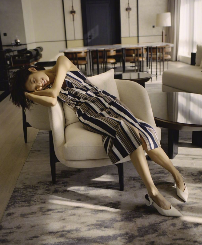 条纹是时尚界的三大元素之一,竖条纹在视觉上能起到修身显瘦的效果,竖条纹设计的连衣裙,营造出一种简单又大方的效果。