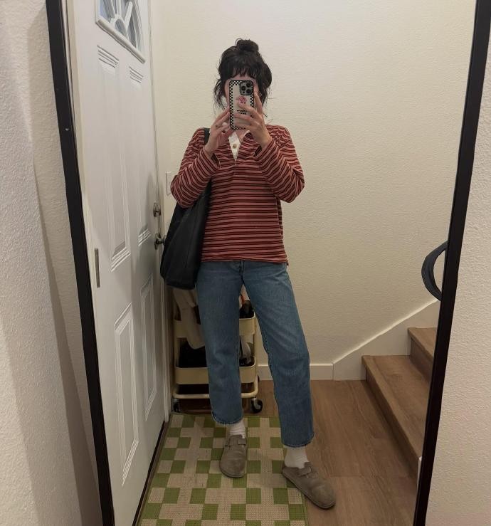 除了色彩和材质,glutenfreeloaf_对穿搭场景的适配度也把握得恰到好处,这也是她的穿搭能被普通人广泛借鉴的重要原因。日常出街时,她会用宽松的条纹衬衫搭配直筒牛仔裤,脚下踩一双小白鞋,再挎上一只帆布包,随性又自在;想要温柔气质时,她会选择一条碎花连衣裙,外搭一件浅色针织开衫,配上低跟玛丽珍鞋,甜度刚好不腻;通勤场景里,她则会用简约的西装外套搭配高腰阔腿裤,内搭基础款吊带或 T 恤,既保持了职场的利落感,又不失日常的松弛氛围,不会显得过于严肃刻板。她的穿搭从不追求过度修饰,而是保留了适度的随性,哪怕是简单的单品组合,也能因为贴合场景而显得格外协调好看。