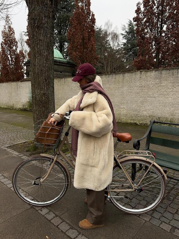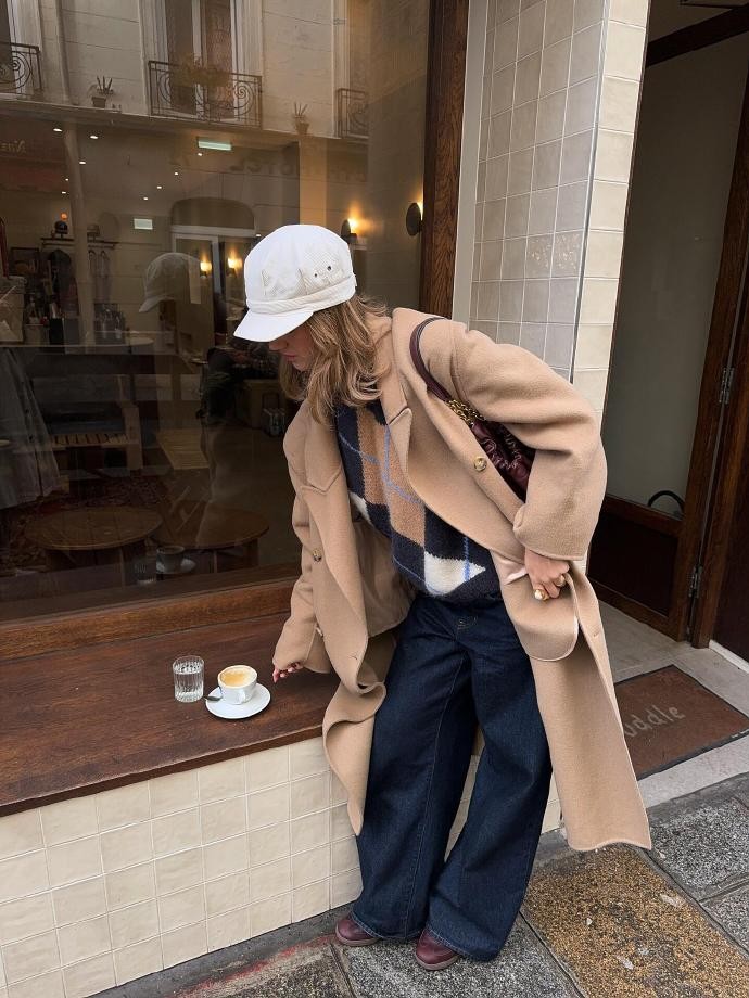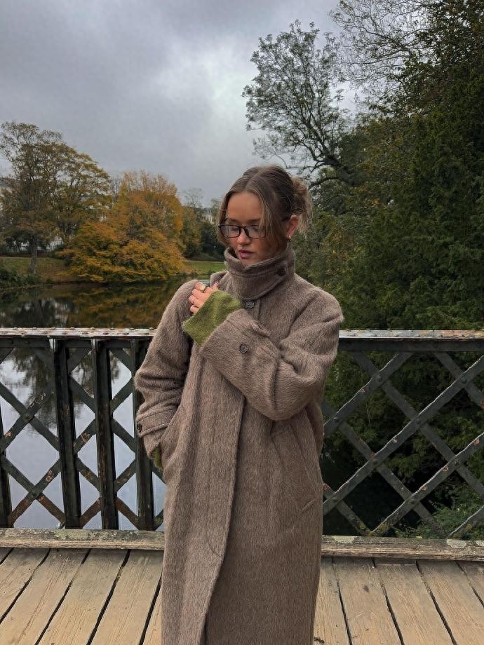 她的照片里没有夸张的单品,大多是基础款的衬衫、针织衫、直筒裤,搭配简约的风衣或大衣,完全贴合上班族的日常着装需求。色彩上更是透着北欧特有的克制与温柔,低饱和的米白、燕麦、浅蓝、雾霾绿常常出镜,偶尔用焦糖色、深棕做点缀,不张扬却格外显质感,不管是通勤路上的随手拍,还是午休时在咖啡馆的小憩瞬间,都能感受到色彩碰撞出的舒适氛围。这种不刻意的搭配逻辑,刚好解决了上班族 “想穿得好看又不费脑” 的需求,不用纠结复杂的叠穿技巧,只要跟着她的色彩思路选款,基础款也能穿出高级感。