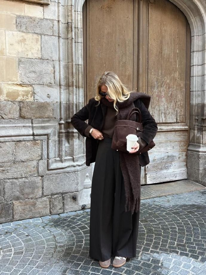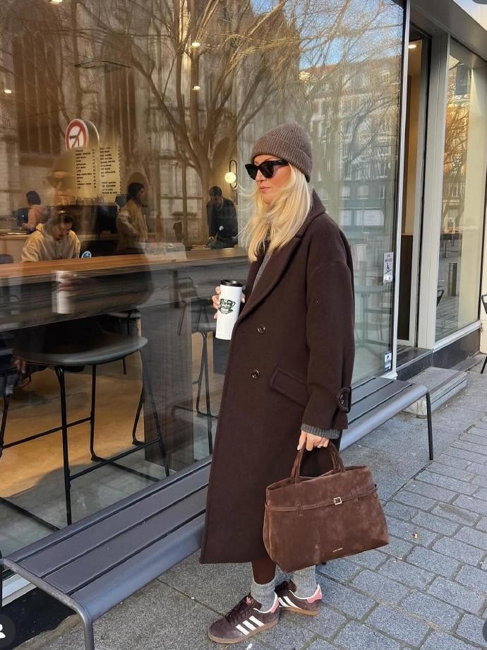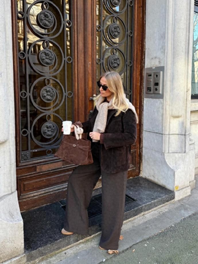 今天给大家介绍的是ins时尚博主mmequeenb,就用极具质感的棕调穿搭,为我们解锁了无红春节的高级打开方式。她的穿搭以棕色系为核心,将浅棕、焦糖棕、深棕等不同明度的棕色玩转自如,自带温暖醇厚的气质,与春节阖家团圆的温馨氛围完美契合。一件焦糖棕的羊毛大衣,搭配浅棕色高领针织衫与深棕色直筒皮裤,再踩一双同色系的复古短靴,没有多余的装饰,却凭借棕色系的层次渐变与优质面料的肌理感,轻松穿出优雅显贵的格调,不管是走亲访友还是家庭小聚,都能成为人群中低调又亮眼的存在。