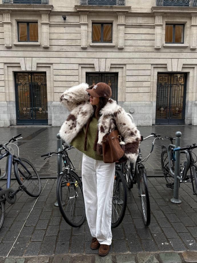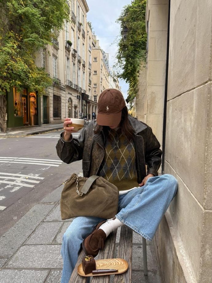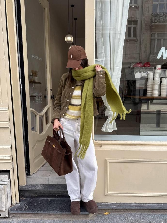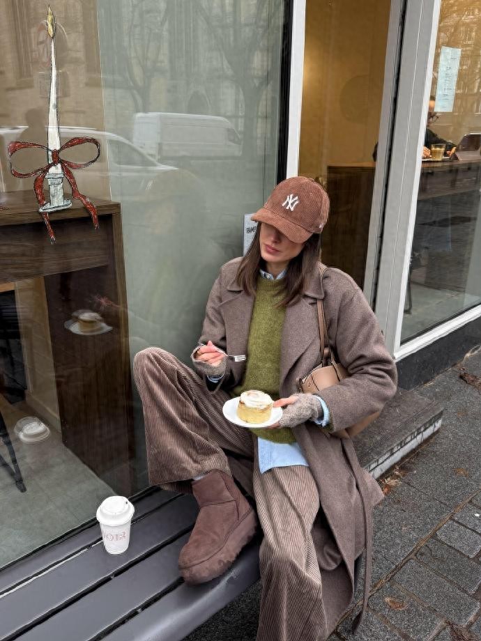 今天给大家介绍的是ins时尚博主anneorion,向来是低饱和色系穿搭的忠实拥趸,马年春节来临,她摒弃传统红色的张扬,以棕绿色系为基底,解锁了一套兼具节日氛围与个人风格的穿搭范本。作为擅长打造松弛感造型的博主,她选择一件深棕绿色灯芯绒衬衫作为核心单品,柔软的面料带着复古肌理,搭配米白色直筒牛仔裤,腰间系一条同色系皮质腰带,不经意间勾勒腰线。领口微敞露出浅卡其色针织内搭,脚下踩一双棕色乐福鞋,鞋扣处点缀小巧的金属小马装饰,悄悄呼应马年主题,漫步在年味渐浓的街头,既有冬日的温暖质感,又以低调配色诠释出不费力的时髦。