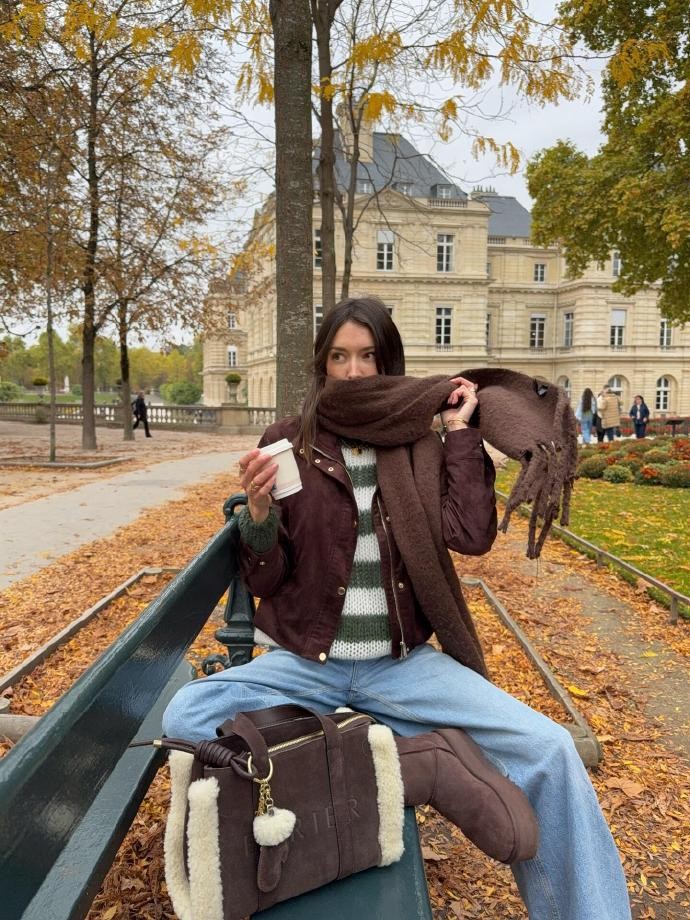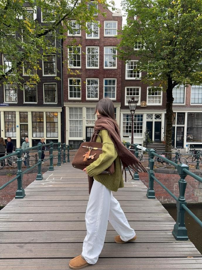 新春走亲访友的场合,Anne用棕绿色系打造得体又不张扬的造型,尽显博主的穿搭巧思。她选择一件墨绿色长款风衣,利落的剪裁自带气场,面料的垂坠感极佳,既能抵御室外的寒风,又能在进门脱衣时展现内里的精致搭配。内搭棕色高领针织衫与同色系直筒西裤,一身顺色穿搭高级感拉满,腰间搭配一条金属扣腰带提升腰线,打破整体造型的沉闷。手提一只棕色皮质托特包,包身绣有简约的祥云纹样,暗藏新春吉祥寓意,脚下踩一双墨绿色短靴,鞋型简约大气,适配不同场合。整体造型无需红色点缀,仅凭棕绿色的和谐搭配与细腻细节,就轻松hold住走亲访友的穿搭需求,彰显出独特的节日格调。