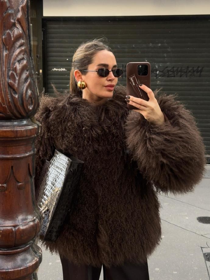 除了对服装版型和色彩的精准把握,angelinaluciani 的穿搭精髓还在于整体氛围的营造,真正诠释了什么是 “毛茸茸的 cool 贵妇”。她常常搭配利落的发型、简约的金属配饰与质感包包,用硬朗细节中和毛绒的柔软,让造型甜酷平衡,温柔却不软弱。同时,她注重整体线条的舒展,无论是宽松外套搭配修身内搭,还是长款大衣搭配利落裤装,都能做到松弛有度,既保留了毛绒单品的温暖舒适,又不失气场与格调,完美展现出不费力的高级感。