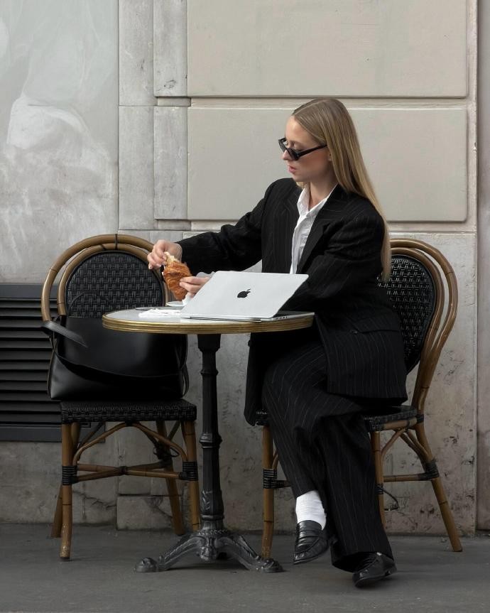 不同于其他博主对多种风格的尝试,stineehonore始终坚定地扎根于黑色极简主义,这份坚守让她的穿搭拥有了极高的辨识度,也传递出一种不迎合、不盲从的生活态度。在她的穿搭里,没有性别界限的束缚,没有年龄的局限,宽松的黑色衬衫既能穿出慵懒随性的松弛感,也能搭配腰带勾勒腰线,展现干练利落的气场;黑色连衣裙可甜可飒,简约的剪裁能适配日常通勤、约会逛街等多种场景,真正实现了“一衣多穿”的实用美学。她用自己的穿搭证明,黑色从不是沉闷、单调的代名词,而是最具包容性、最能凸显个人气质的颜色,只要选对版型、注重质感,就能穿出独属于自己的高级感。