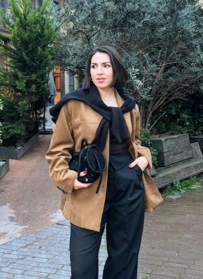 ozlemdelice的穿搭最具吸引力的地方,在于她对单品的精准选择和搭配的松弛感把控。她的衣柜里没有过多夸张小众的款式,反而以基础款为主,简约的针织衫、利落的衬衫、垂坠感极佳的阔腿裤、百搭的风衣,都是她反复搭配的单品,但通过巧妙的组合与细节点缀,却能穿出不重复的格调。她格外注重服装的版型与面料,偏爱宽松却不拖沓的廓形,既能修饰身材比例,又能带来极致的舒适感,面料上则优先选择柔软亲肤、质感上乘的材质,哪怕是简单的白T恤,也能在她的搭配中展现出高级质感。这种“以简胜繁”的搭配思路,不仅降低了穿搭难度,更贴合当代人追求简约舒适的生活理念,也让她的穿搭更具借鉴性。